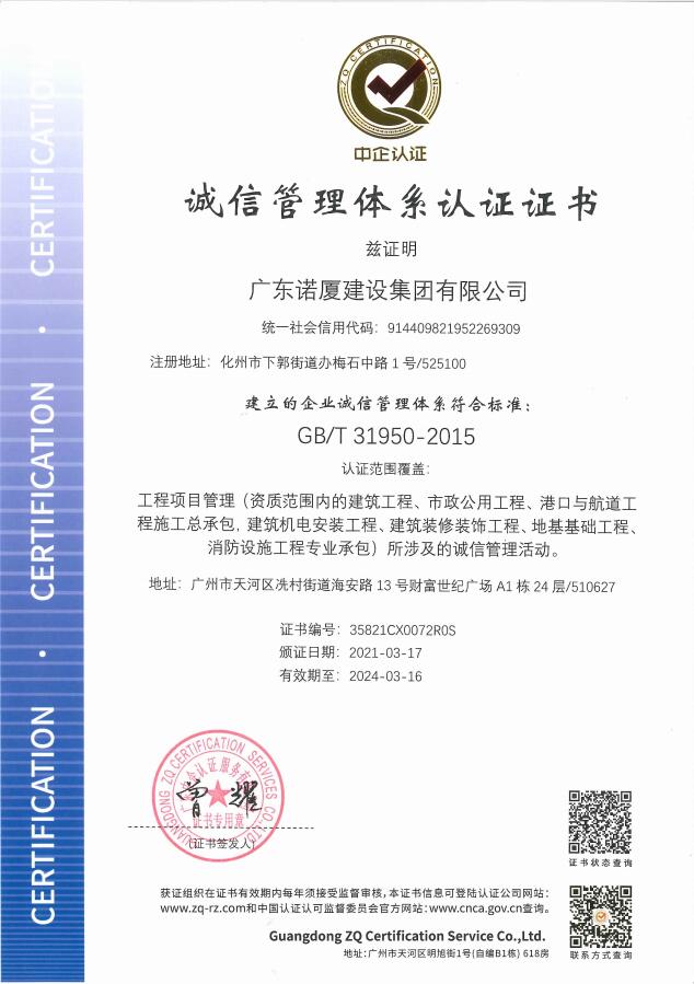 廣東諾廈建設(shè)集團(tuán)有限公司是諾廈集團(tuán)的核心企業(yè),具備國家房屋建筑工程施工總承包壹級(jí)、市政工程施工總承包壹級(jí)、港口與航道工程總承包、建筑裝修裝飾工程、消防設(shè)施工程、地基基礎(chǔ)工程、機(jī)電設(shè)備安裝工程、體育場(chǎng)地設(shè)施工程、建筑智能化工程、河湖整治工程、水利水電工程等資質(zhì)。......